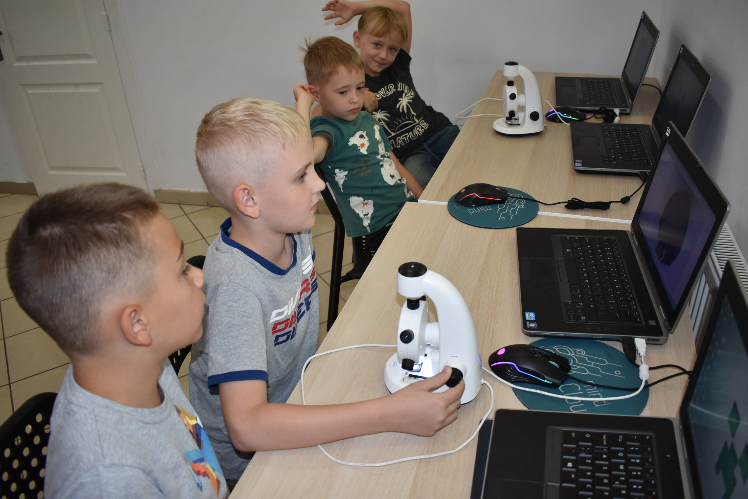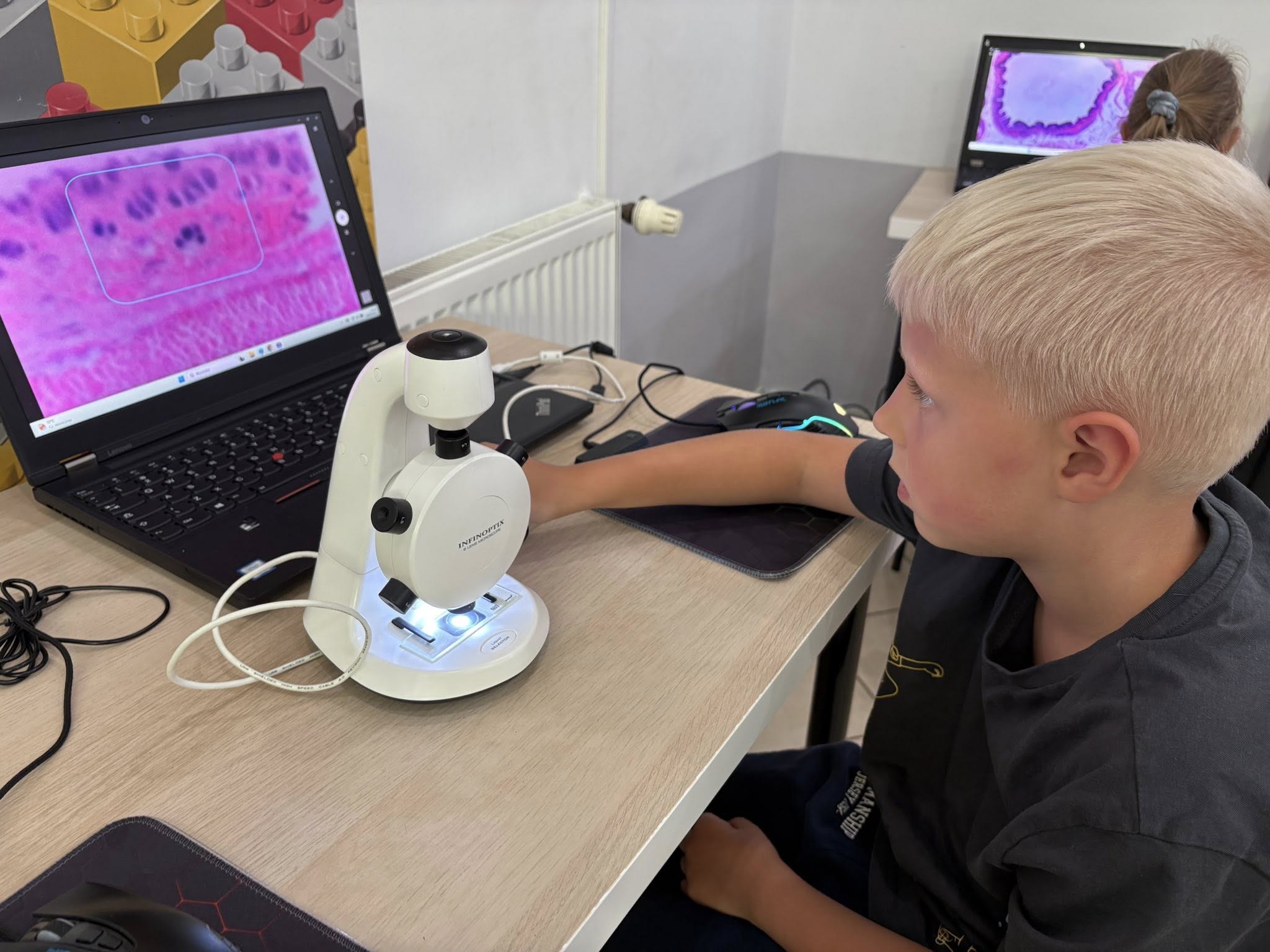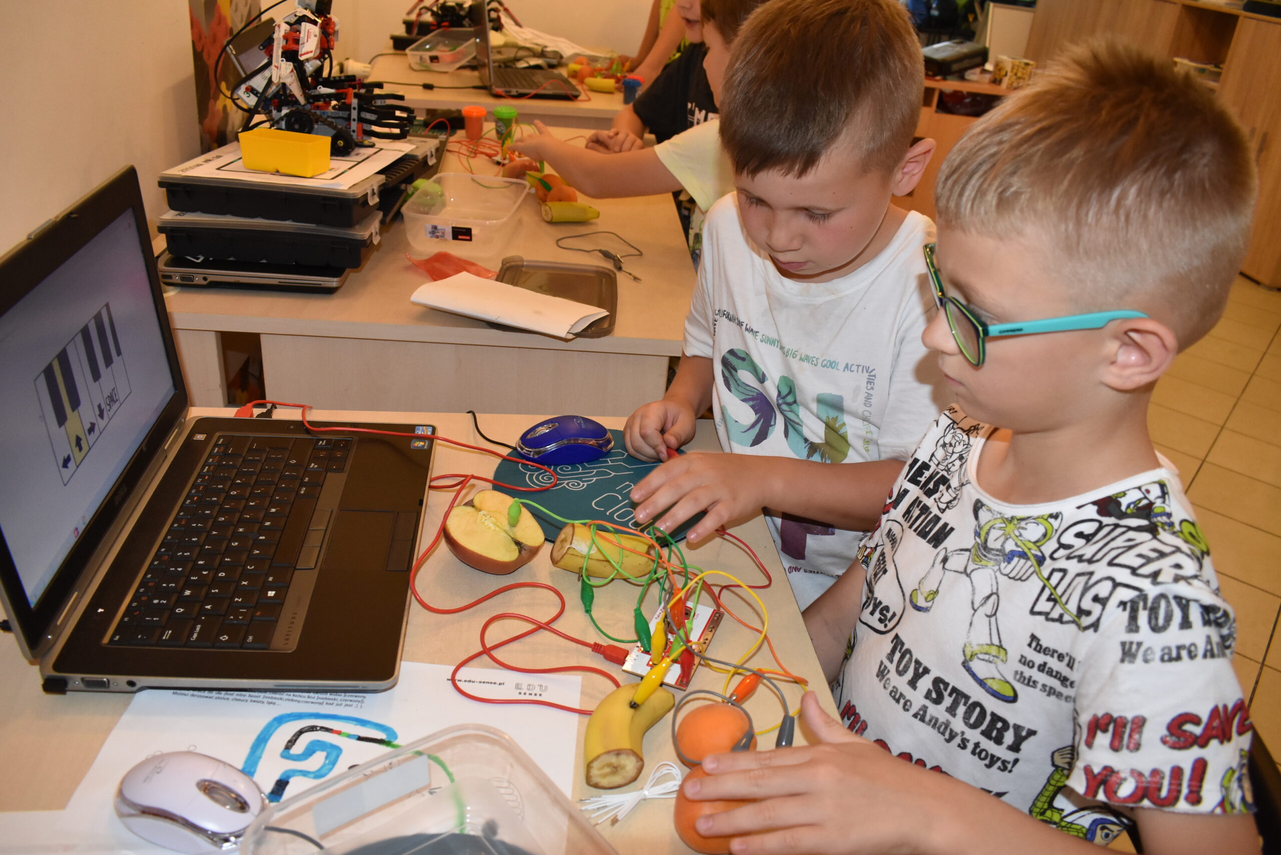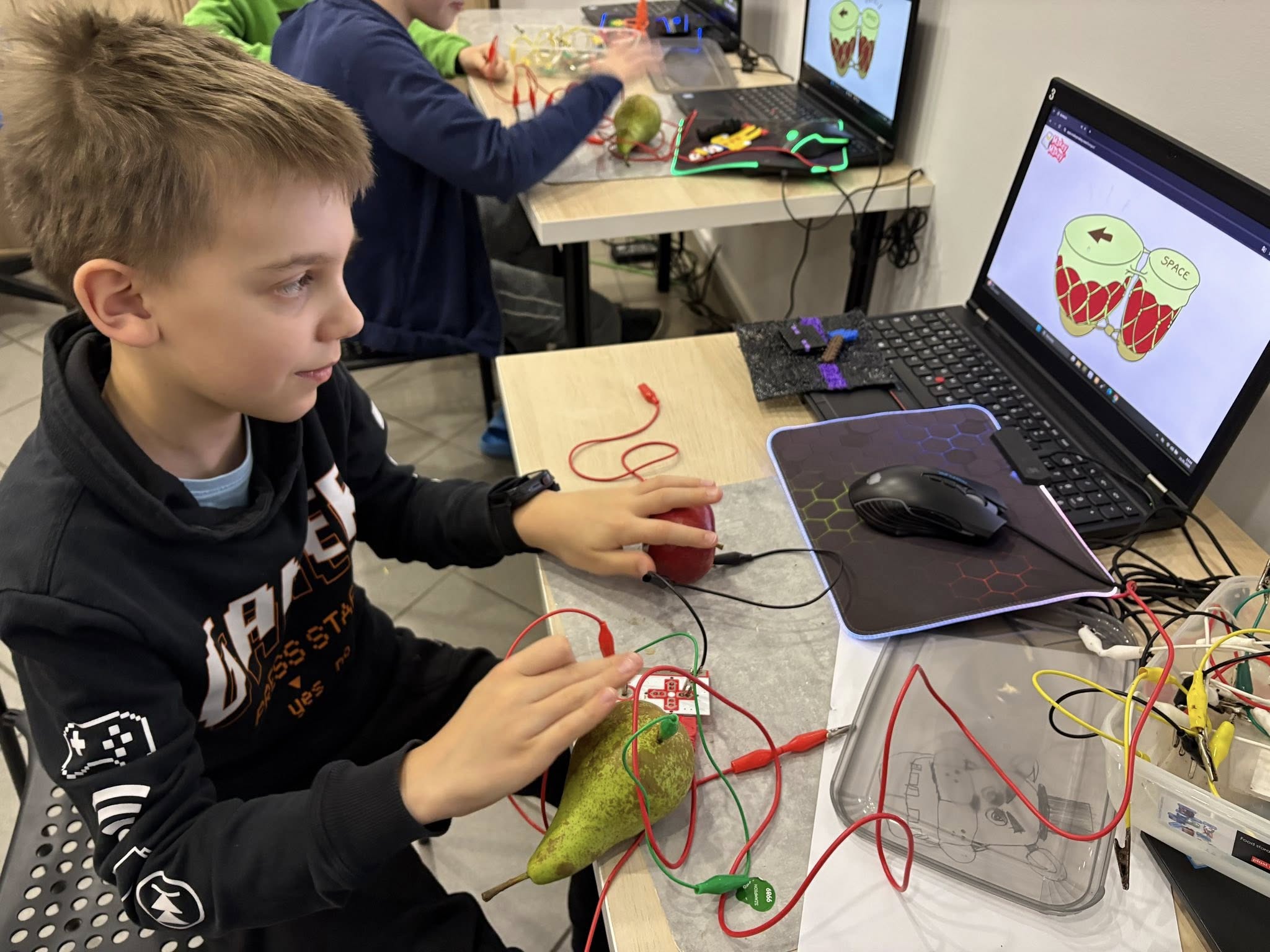 Zamiast gotowych atrakcji, dzieci same sprawdzają, jak działa świat – od mikroskopów, przez eksperymenty z prądem, aż po sterowanie grą… owocami.