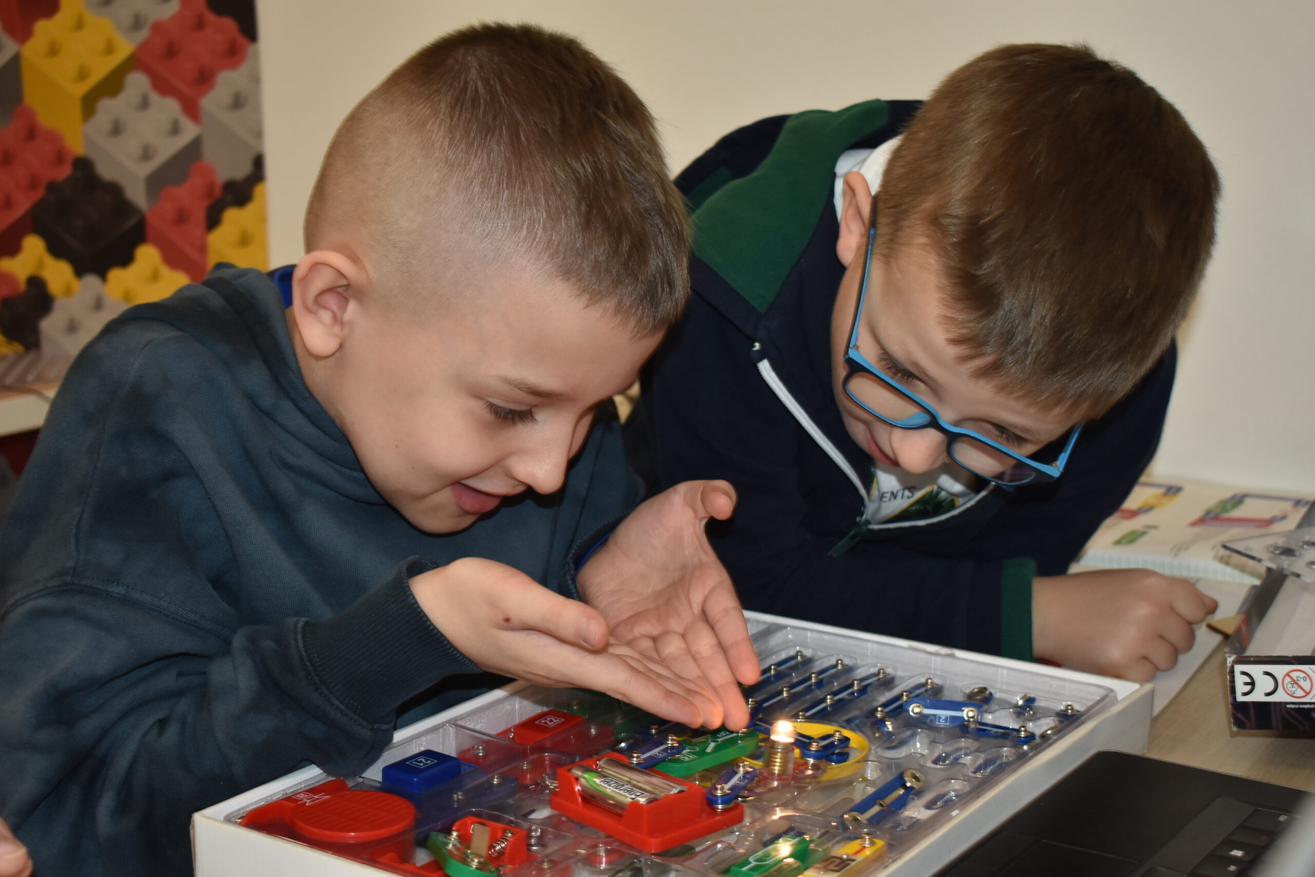 Różnorodność aktywności sprawia, że każde dziecko może zaangażować się na swój sposób – jedne chętniej eksperymentują, inne budują, a jeszcze inne odnajdują się w zadaniach i rywalizacji. Praca w parach dodatkowo zwiększa zaangażowanie i sprawia, że dzieci naturalnie współpracują